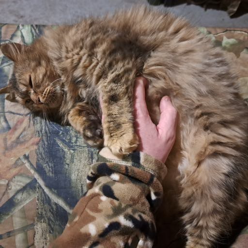 "Venomous", who despite her name, is a very sweet cat. Rescued from the frontline, she now lives with us in our base, a little out of Russian tube artillery range. Like some cats who have had it rough here, she went from a frightful state, and not pretty to look at, into blossoming into this beautiful creature.