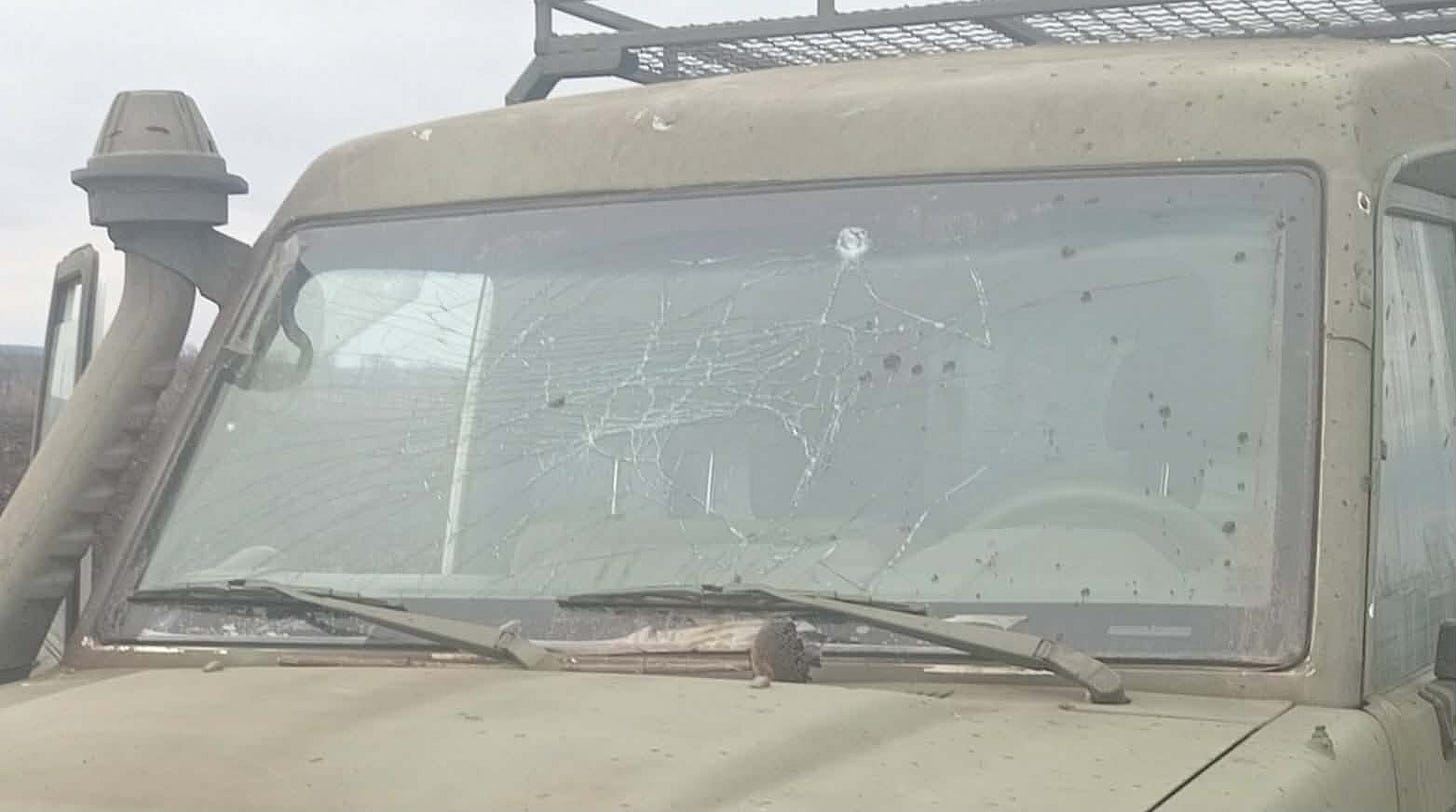 Oleksii is kind of our Starlink guru. True to form, as soon as we are in the bunker, he is asking if they’ve got one and getting the password from them. Because there’s no cel service here. We knew that already. He immediately updates our unit that we got hit, and we are going to need yet another windshield. Our second lost windshield in 3 days. In fact, I just picked up this truck from our mechanics about 10 days ago, when they finished installing a new windshield, replacing the one the big KAB bomb wrecked. This time. This is the same Toyota that had its windshield and side windows blown out by a KAB at our stabilization point when we were on the Prokrovsk front. And this same truck is the one that got three 30mm VOG grenades dropped on it by drones in the Serebryanksyy Forest. It’s latest windshield (its third) still had tape on it. When I picked it up from our mechanics, I didn’t know if I was supposed to leave it on for a bit for some glue to cure or something, and no one else pulled it off in the whole week and half we had it before that windshield too got blown up. There’s more than one reason I put an armored windshield into mine. When we got this latest one installed in the benzene Toyota we were told we got the last Toyota 70 series windshield in the country. Luckily, it won't be our problem to replace these, as the army is taking all of our vehicles (except mine) as part of disbanding the Legion. The handover of our vehicles is supposed to happen in 8 more days. Meanwhile, we fight on.